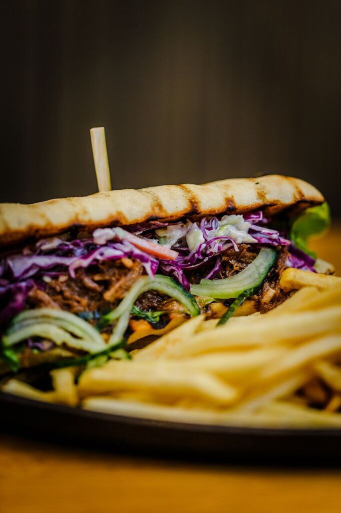 Grísasnizel í raspi með gratineruðum kartöflum og sósu